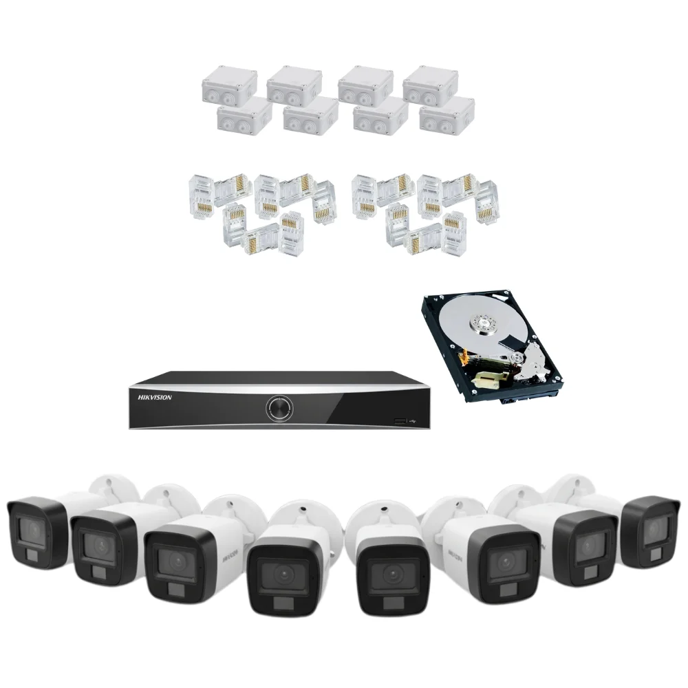 Kit Complet Supraveghere Exterior IP Hikvision 8 Camere 4MP PoE, NVR AcuSense 8 Canale, HDD 4TB, Detectie Umana si Vehicule, IR 60m, H.265+