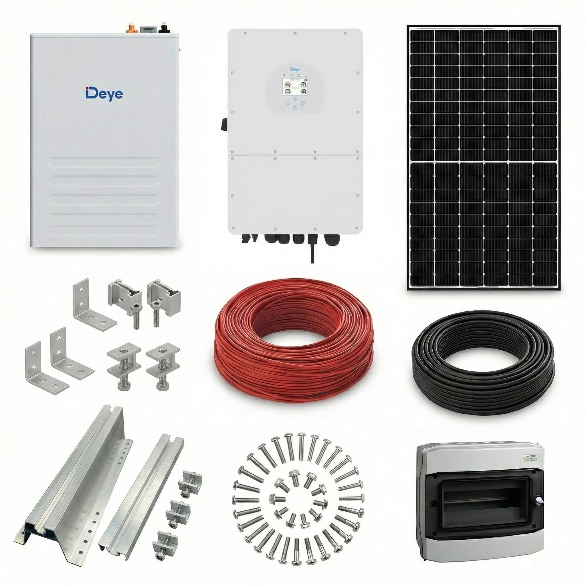 Kit Fotovoltaic Hibrid Trifazat 8kW High Voltage cu Invertor Deye SUN-8K-SG01HP3-EU-AM2, 2x Acumulator Deye BOS-G Pro 5.12kWh HV (10.24kWh total) și 10 Panouri Monocristaline N-Type 575W